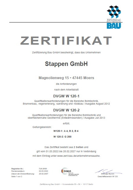 Die Stappen GmbH ist nach dem folgenden Arbeitsblatt zertifiziert.